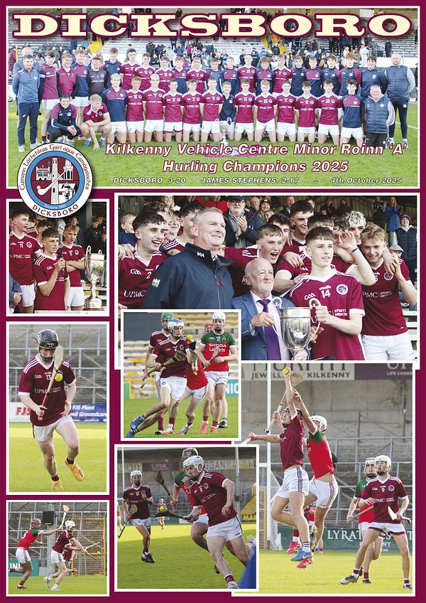A superb second half performance saw Dicksboro surge to victory over James Stephens by 3-20 to 2-17 to secure the Kilkenny Vehicle Centre Minor Hurling Roinn 'A' title for 2025 in the final played at UPMC Nowlan Park on Saturday, 4th October.