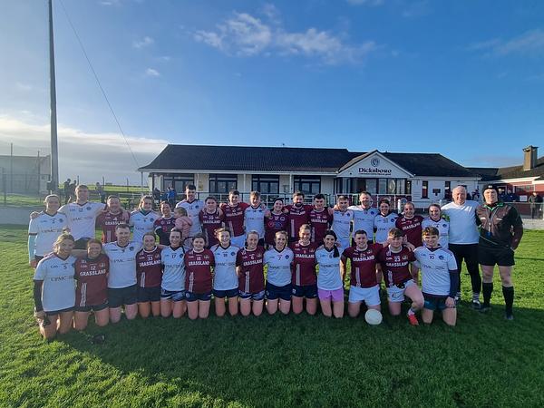 The Maroons worked their way back through big scores from Jenny & Orla Hanrick as Ciara Phelan & Aisling Browne started to win the battle in the middle of the field over Kev Moore & Shark Nolan. The Whites were awarded a penalty when Dan Kenny pulled down Niamh Phelan in the square & up stepped Tommy Farrell to took away the penalty to level up matters. Beans rooted. Game on.