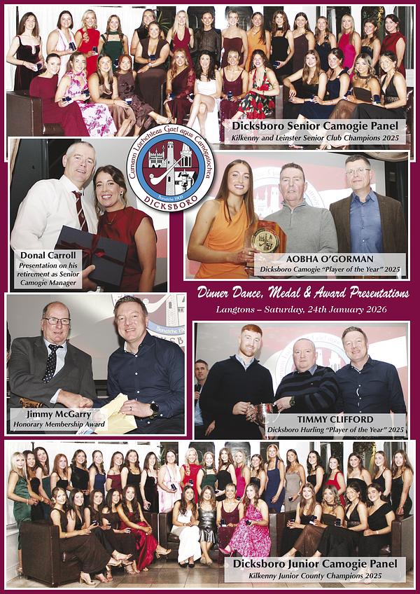 Dicksboro GAA & Camogie Club held a night of celebration with a Dinner Dance, Medal and Award presentations at a Dinner Dance in Langton's on Saturday night last.